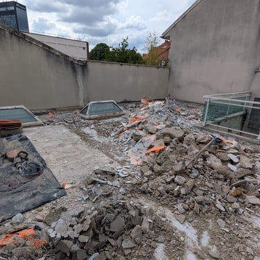 Important dégât des eaux causé par un défaut d'étanchéité du toit-terrasse ayant endommagé la maison et la copropriété voisine